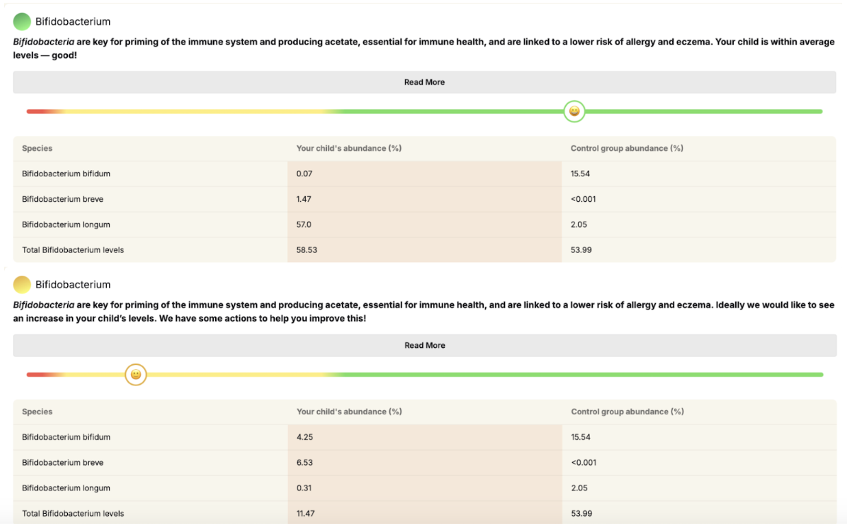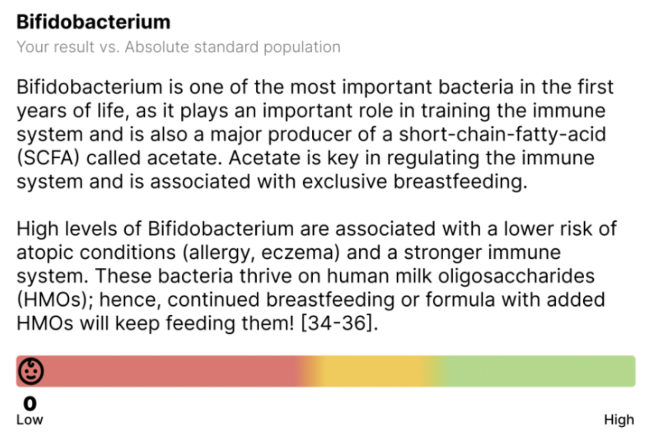 Based on the test results, Alba recommended a strain-specific probiotic: Bifidobacterium infantis, a species known to help restore beneficial infant gut bacteria.