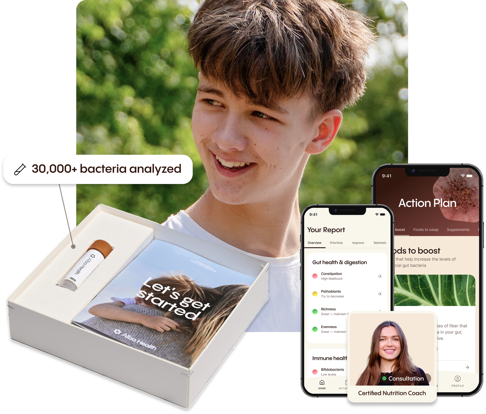 Stop treating low energy, bloating, skin issues, and hormonal ups and downs as your teen’s normal. Get personalized gut health data and guidance from a certified Nutrition & Health Coach to support a healthier gut.
